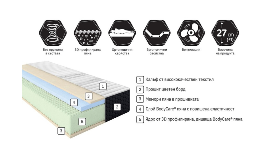 -3D профилирана BodyCare пяна – подобрява циркулацията на въздуха