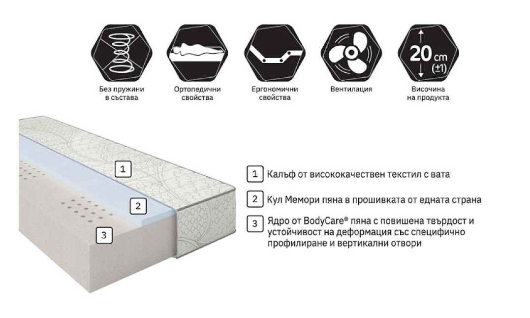 -Ядрото от BodyCare пяна с повишена твърдост – устойчива на деформация
