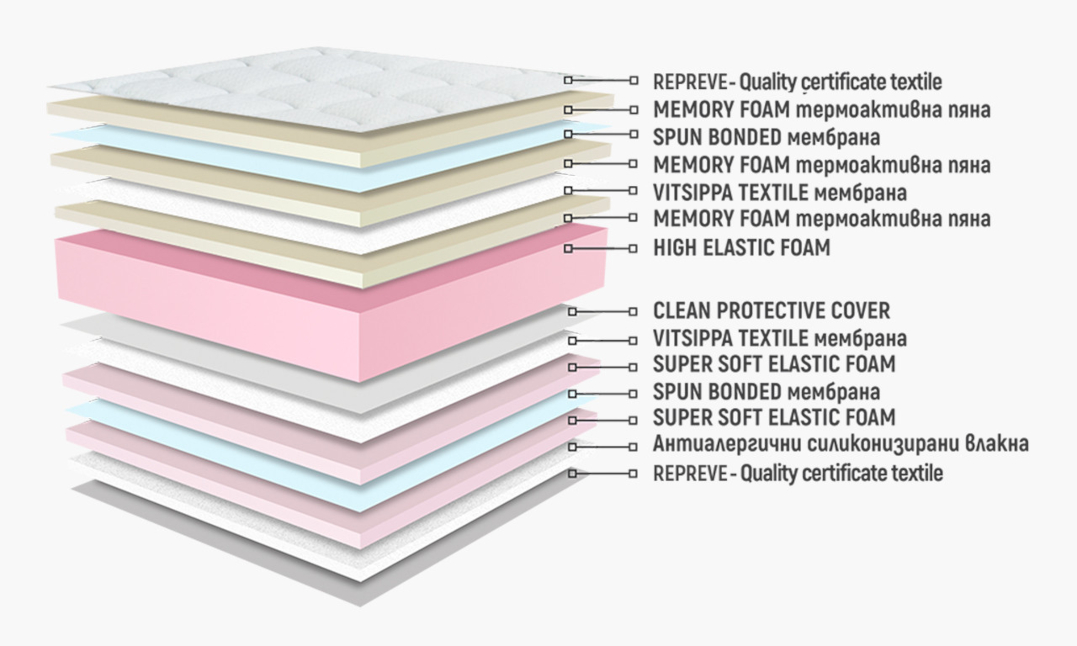 • Две комфортни страни – мемори пяна от едната страна и Super Soft пяна от другата за персонализиран комфорт.