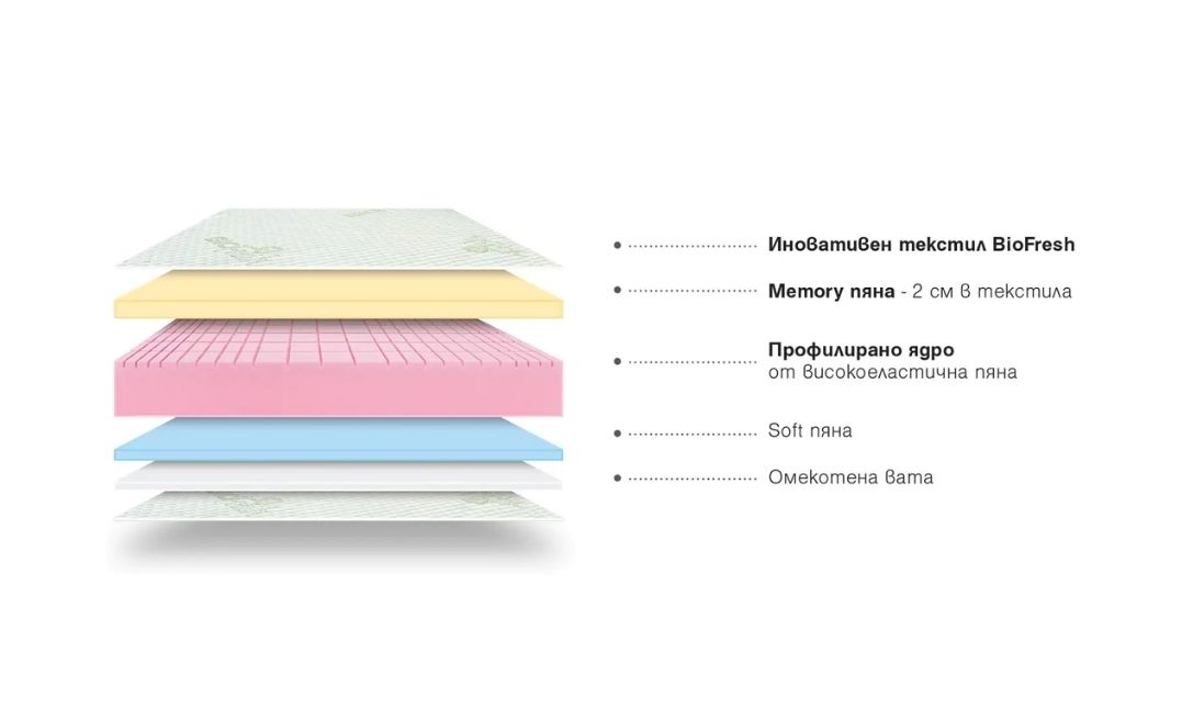 Характеристики: -Луксозен текстил Biofresh – мек и приятен на допир -Memory пяна 2 ...