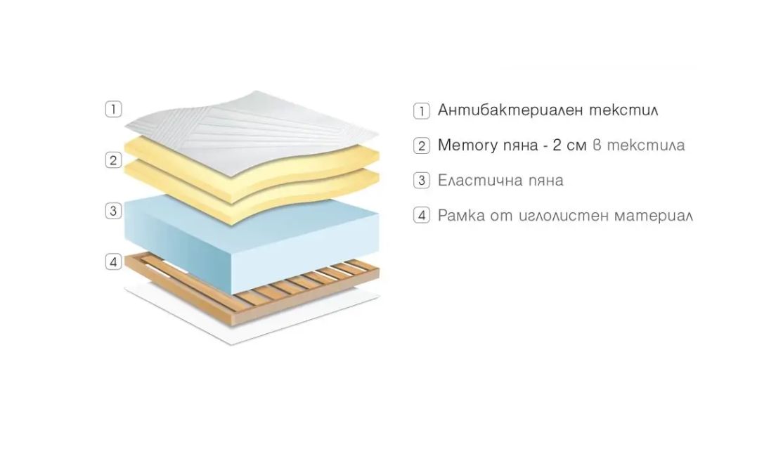 Слой мемори пяна – адаптира се към извивките на тялото за персонализирано усещане