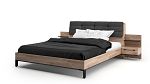 Леглото Pulsar в съчетание от honey castello oak и акценти в carbon wood съчетава топлата визия на естествена дървесина с модерно индустриално излъчване. Тапицираната табла с обемна тъмносива дамаска осигурява максимален комфорт при облягане, а тъмните декоративни елементи подчертават съвременния характер на модела.