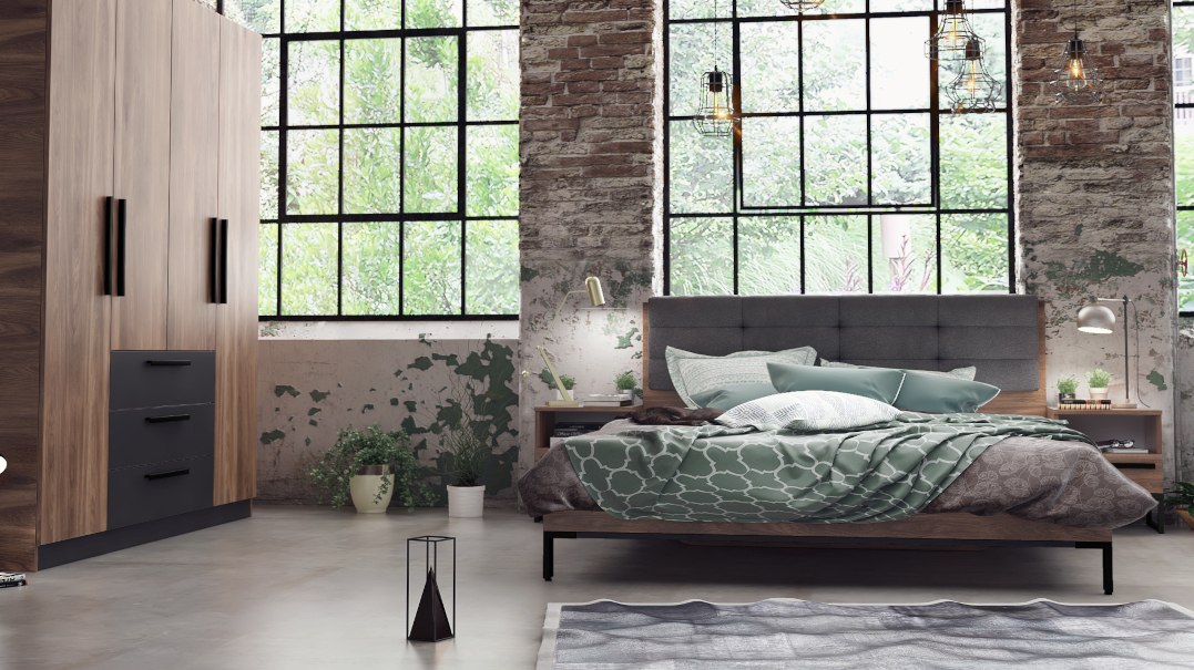 Спален комплект Maximo – индустриален стил с топъл дървесен акцент