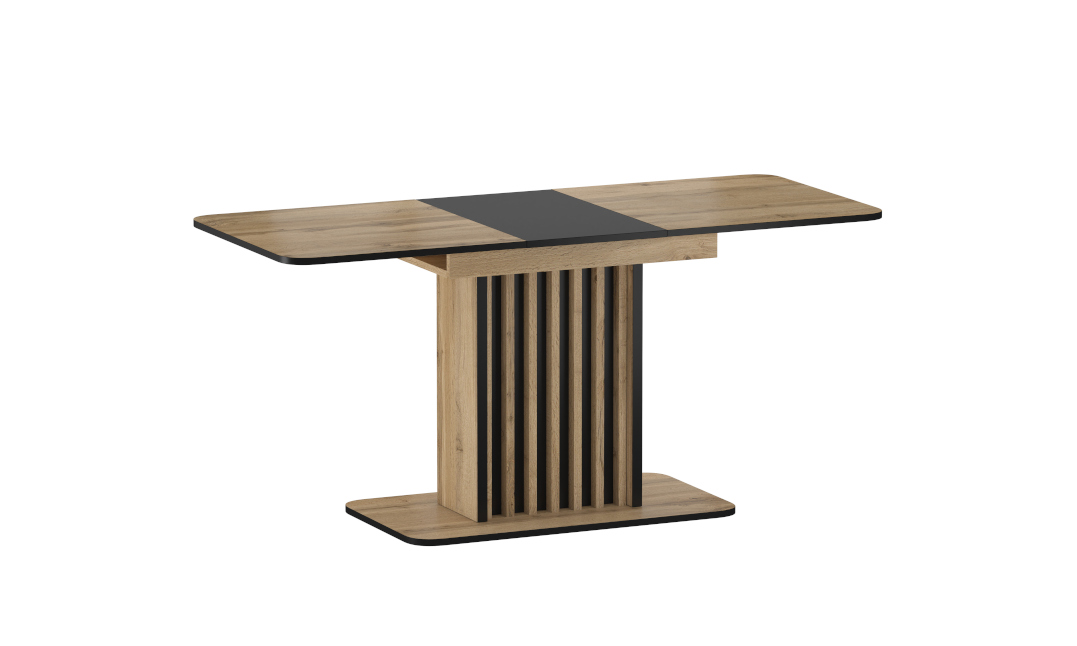 Със светъл, натурален дървесен цвят и стилни черни акценти, масата Boston впечатлява с изчистен и съвременен дизайн. Закръглените ъгли и интересната вертикална основа придават мекота и характер. Цветовата комбинация внася топлина и модерен контраст в интериора, подходящ както за домашна, така и за по-елегантна среда.
