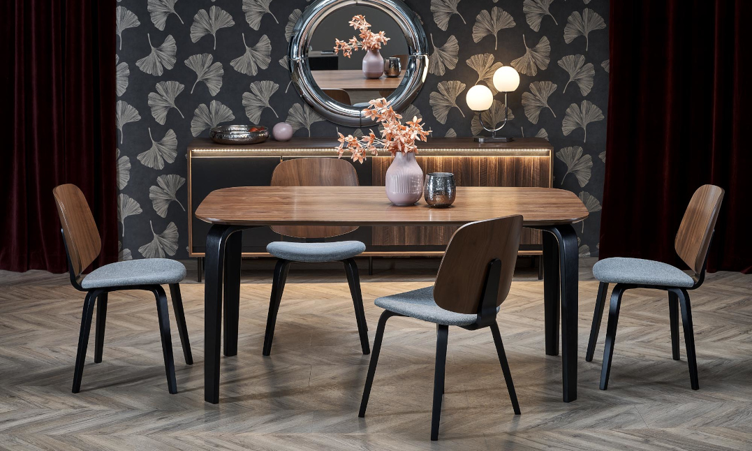 Krono е модерна трапезна маса с елегантно закръглени ъгли и стилна визия. Масивният плот и извитите крака създават усещане за лекота и изтънченост, подходящи както за семейни вечери, така и за стилни събирания.