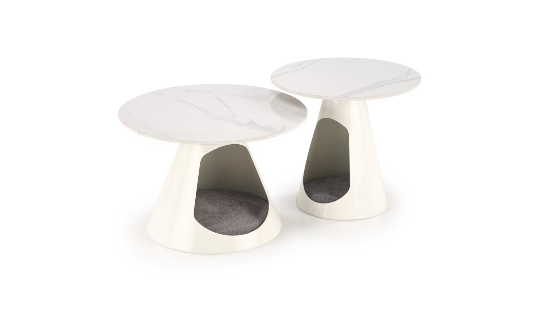 Lana е сет от две масички със синтерован камък за плот и скулптурна стоманена основа. Модерен дизайн с артистичен усет, който съчетава стил и функционалност.