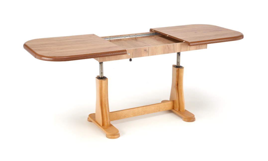 Glory съчетава MDF плот с основа от масив бук, предлагаща стабилност и дълготрайност. С вграден повдигащ механизъм и разтегателна функция, масата се адаптира лесно към всяка ситуация – от кафе с приятели до вечеря с цялото семейство.